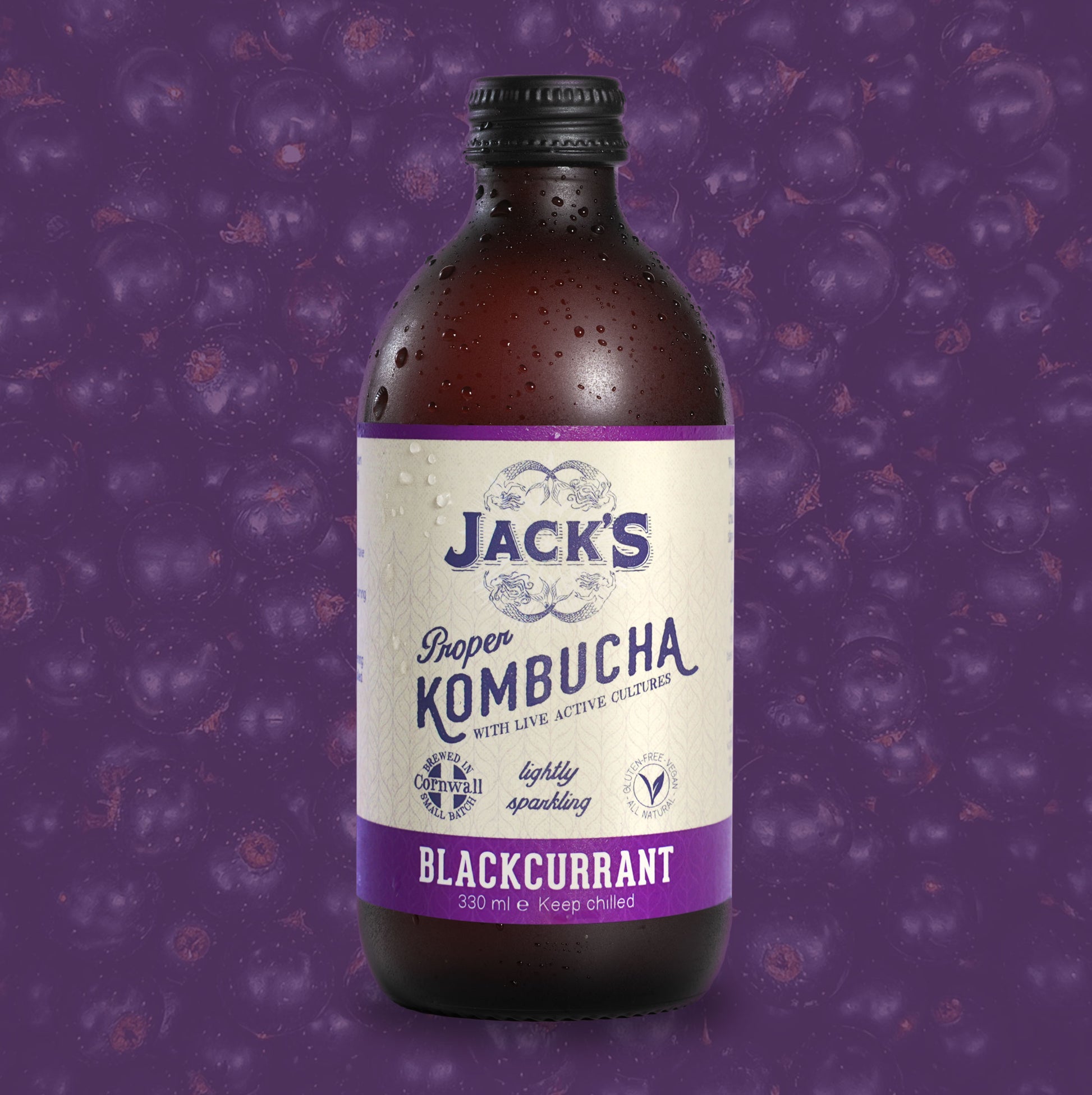Our 12 X 330 ml case of Jack's Blackcurrant Kombucha is made in Cornwall, using traditional methods.